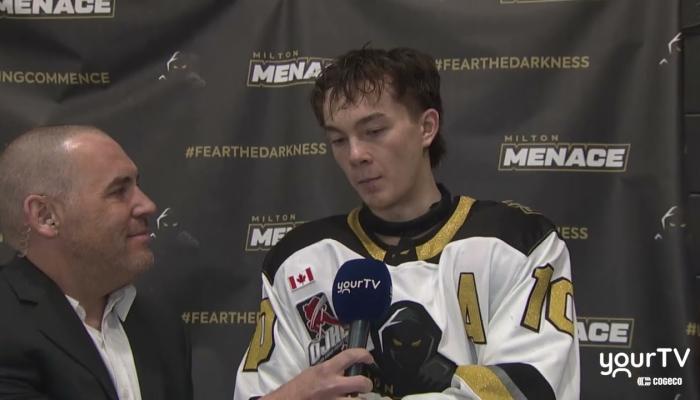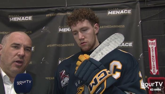 Alan Corkum interviews Milton Menace Forward Tristan Tremble following their 3-1 victory over the Burlington Cougars in Game 7 of the first round. Hear Tremble's thoughts on the intense playoff action and what the series win means for the team as they advance.