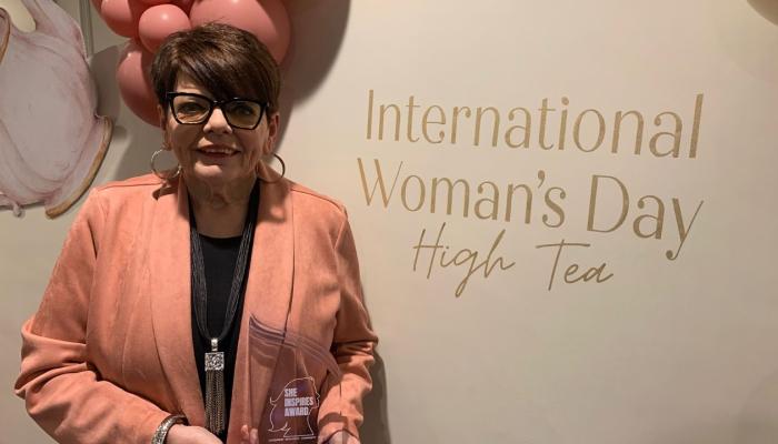 At the Cornwall & Area Chamber of Commerce / Cornwall Business Enterprise Centre International Women's Day High Tea, The 2nd Annual She Inspires Award was given to Maison Baldwin House Executive Director Debbie Fortier.