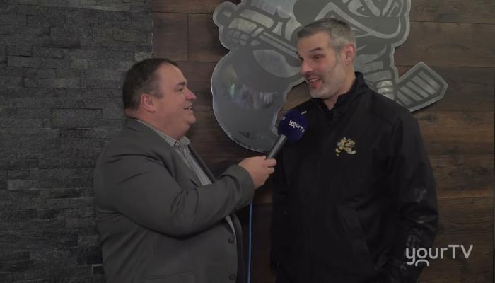 Terry Doyle gets the scoop from new Sarnia Sting Hockey Club Head Coach, Mathieu Turcotte.